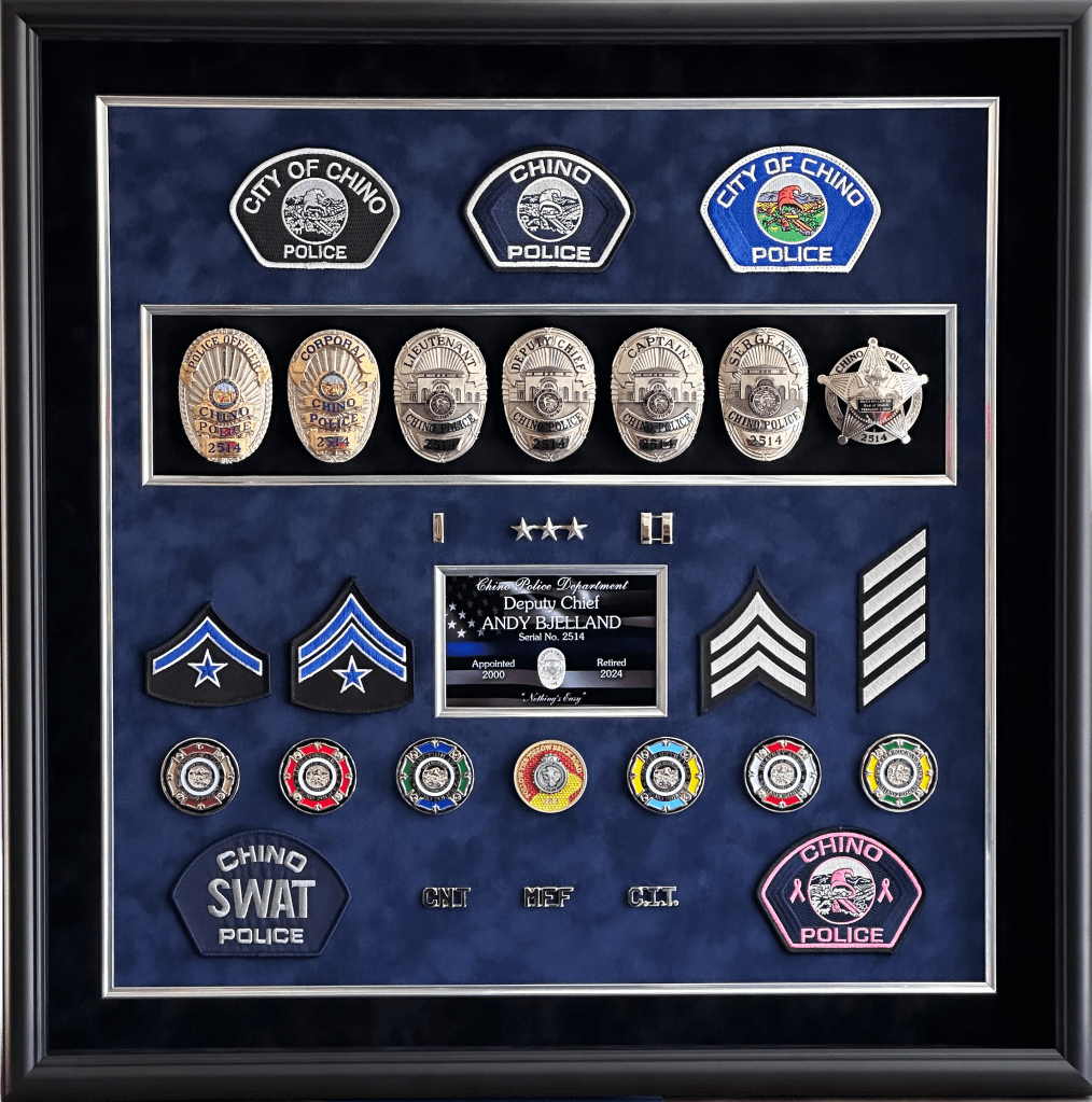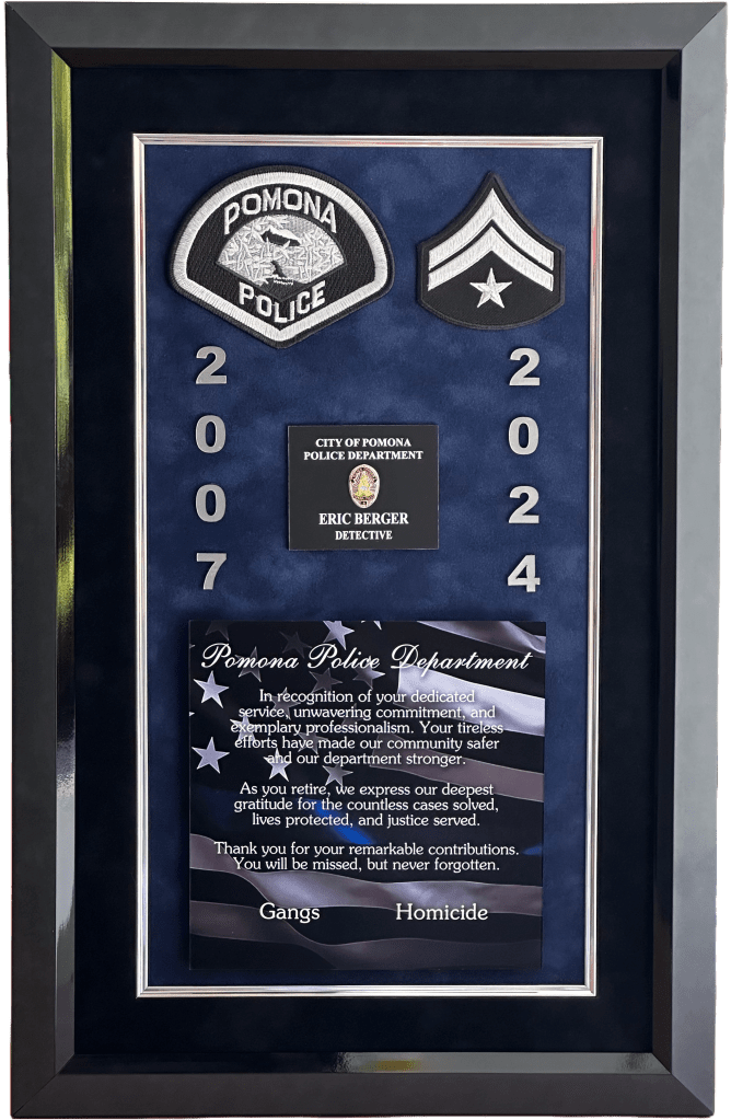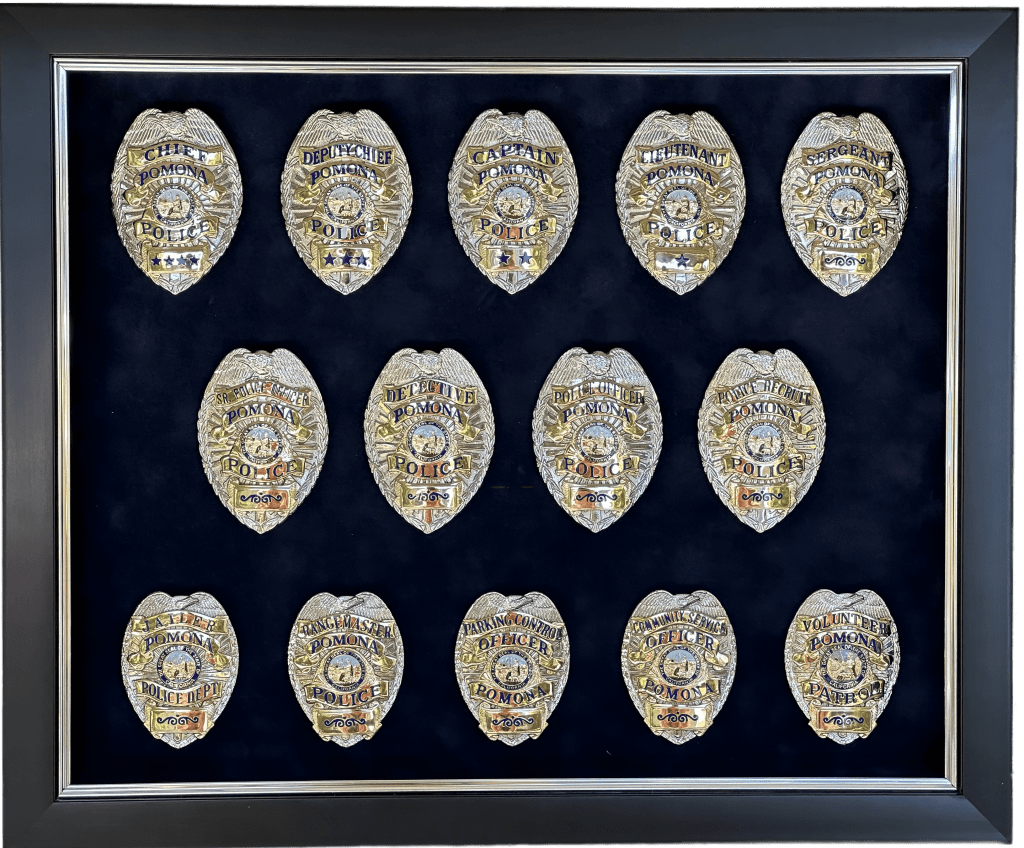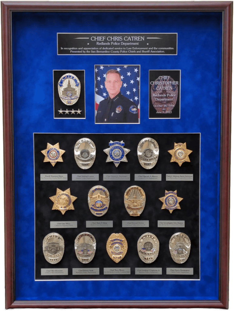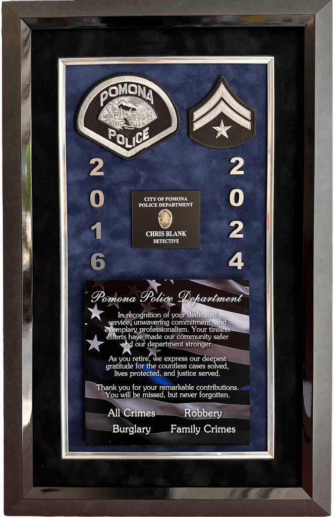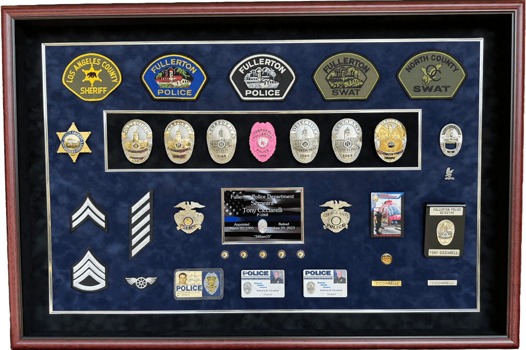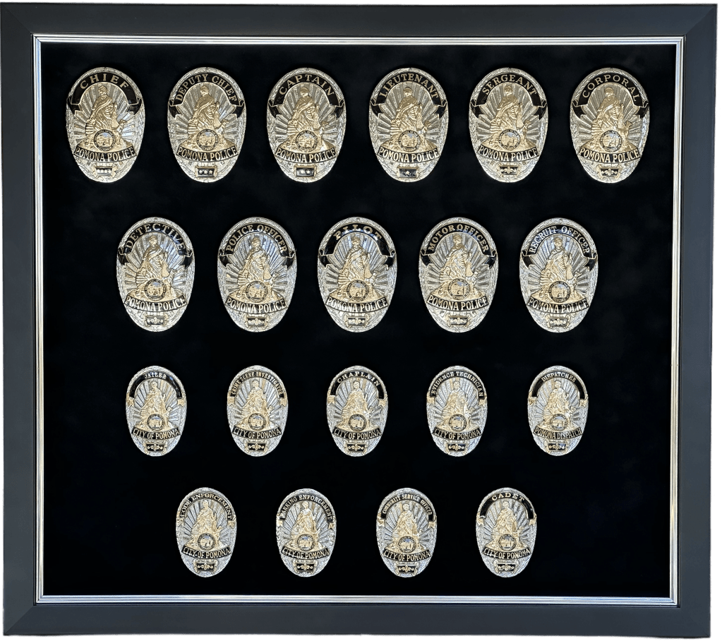 SHADOWBOXES PLAQUES BADGE DISPLAYS FIRE Here is all my latest work in order. Enjoy! DURAN / UPLAND PD UPLAND PD / MEMORIAL FLAG BOX UPLAND PD / MEMORIAL FLAG BOX MONTCLAIR PD / YEARLY AWARDS BOGART / FULLERTON PD HARRIS / LAPD SEVESIND / POMONA PD HARVEY / POMONA PD FREEMAN / POMONA PD BLANK / POMONA PD BERGER / POMONA PD DIAZ / LAPD FLORES / LAPD UPLAND PD / MEMORIAL FLAG BOX HERNANDEZ / LA PORT POLICE ACEVEDO / LASD ACEVEDO / LASD TURNING OF THE VALVE CEREMONY ROMERO / FULLERTON PD LIEUTENANT CAUBLE / CHINO PD DEPUTY CHIEF BJELLAND / CHINO PD RIVERA / LAPD UPLAND PD / AWARDS CA INSTITUTE FOR WOMEN K9 RAGNAR / TUSTIN PD HALL OF FAME / CITY OF CHINO POMONA PD OLD SCHOOL COOL CITY HALL DICKINSON / LAPD ACOSTA / LAPD BRACHT / LAPD EGGLESTON / CHP JETTE / CHINO PD MADD PERPETUAL PLAQUE / MONTCLAIR PD YEARLY AWARDS / CHINO PD STEVENS / MONTCLAIR PD LEE / ANAHEIM PD UNDERSHERIFF BOATWRIGHT / SAN BERNARDINO COUNTY CALDERON / LAPD DANA / RIVERSIDE PD MANSOUR / WEST COVINA FIRE MONTCLAIR YEARLY AWARDS CORPORAL CONTRERAS / CHINO PD SERGEANT SUTTON / CHINO PD K9 BARRETT / IRVINE PD OFFICER HERNANDEZ / CHINO PD CHAPLAIN BOYD / CHINO PD DEAMER / LAPD INVESTIGATOR SUAREZ / CHINO PD CORPORAL HAINES / CHINO PD BADGE HISTORY / POMONA PD BADGE HISTORY / POMONA PD COOPER / CENTRAL MARIN POLICE SERGEANT CICCIARELI / FULLERTON PD CITY OF CHINO / COUNCIL MEMBERS / MAYOR CHIEF DOMINGUEZ / COLTON PD K9 KOBRA / CHINO PD CHIEF SIMMONS / CHINO PD CHIEF SIMMONS / CHINO PD CHIEF SIMMONS / CHINO PD CHIEF AVELS / MONTCLAIR PD CHIEF CATREN / REDLANDS PD LIEUTENANT CAPODANNO / LA PORT POLICE SERGEANT NUA / LA PORT POLICE RO CONRAD / MONTCLAIR POLICE