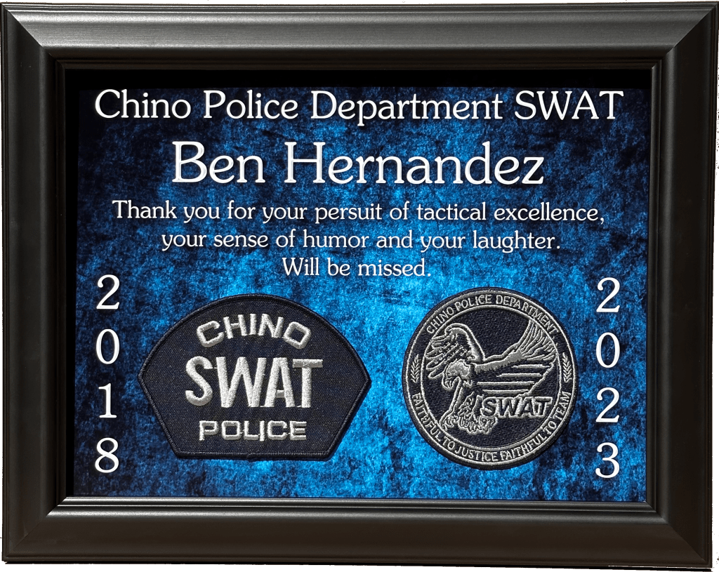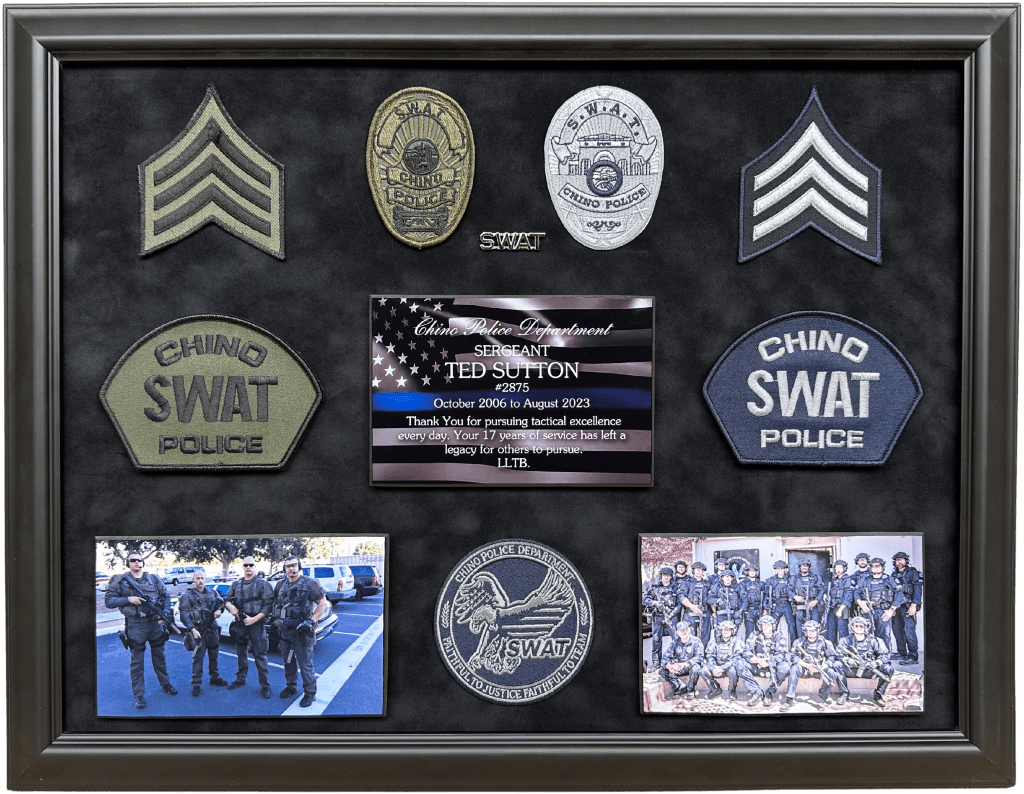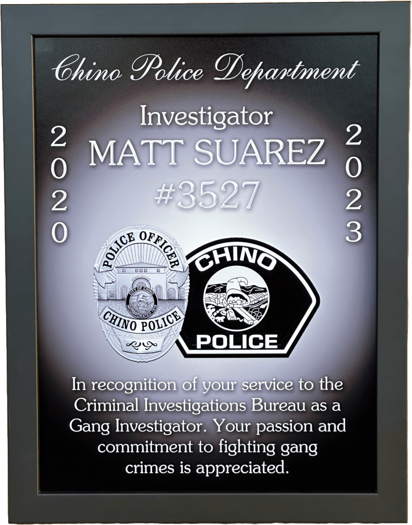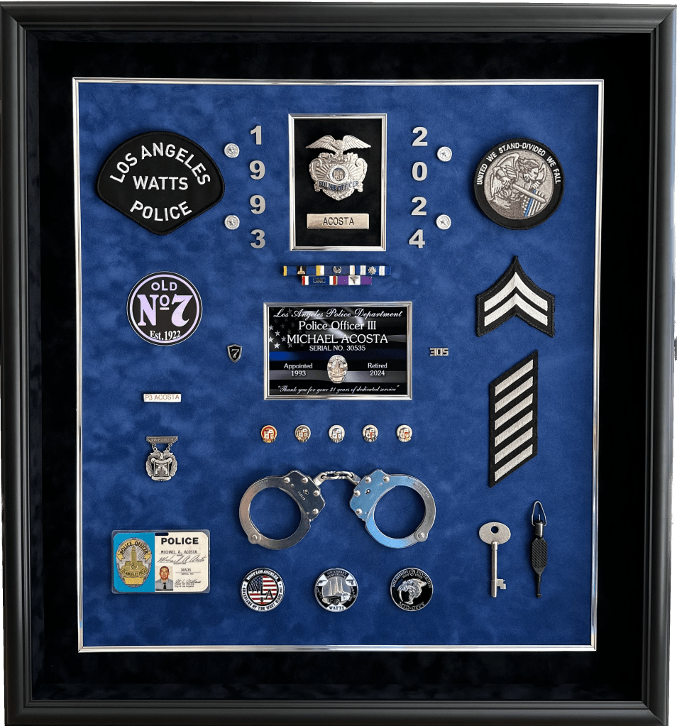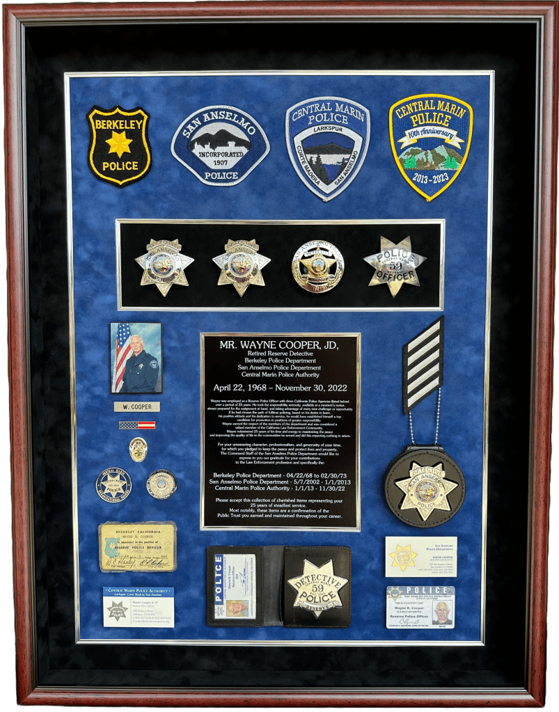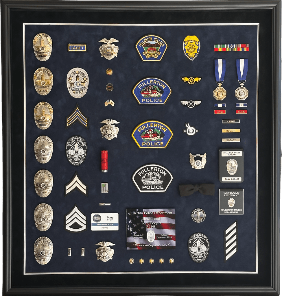 SHADOWBOXES PLAQUES BADGE DISPLAYS FIRE Here is all my latest work in order. Enjoy! DURAN / UPLAND PD UPLAND PD / MEMORIAL FLAG BOX UPLAND PD / MEMORIAL FLAG BOX MONTCLAIR PD / YEARLY AWARDS BOGART / FULLERTON PD HARRIS / LAPD SEVESIND / POMONA PD HARVEY / POMONA PD FREEMAN / POMONA PD BLANK / POMONA PD BERGER / POMONA PD DIAZ / LAPD FLORES / LAPD UPLAND PD / MEMORIAL FLAG BOX HERNANDEZ / LA PORT POLICE ACEVEDO / LASD ACEVEDO / LASD TURNING OF THE VALVE CEREMONY ROMERO / FULLERTON PD LIEUTENANT CAUBLE / CHINO PD DEPUTY CHIEF BJELLAND / CHINO PD RIVERA / LAPD UPLAND PD / AWARDS CA INSTITUTE FOR WOMEN K9 RAGNAR / TUSTIN PD HALL OF FAME / CITY OF CHINO POMONA PD OLD SCHOOL COOL CITY HALL DICKINSON / LAPD ACOSTA / LAPD BRACHT / LAPD EGGLESTON / CHP JETTE / CHINO PD MADD PERPETUAL PLAQUE / MONTCLAIR PD YEARLY AWARDS / CHINO PD STEVENS / MONTCLAIR PD LEE / ANAHEIM PD UNDERSHERIFF BOATWRIGHT / SAN BERNARDINO COUNTY CALDERON / LAPD DANA / RIVERSIDE PD MANSOUR / WEST COVINA FIRE MONTCLAIR YEARLY AWARDS CORPORAL CONTRERAS / CHINO PD SERGEANT SUTTON / CHINO PD K9 BARRETT / IRVINE PD OFFICER HERNANDEZ / CHINO PD CHAPLAIN BOYD / CHINO PD DEAMER / LAPD INVESTIGATOR SUAREZ / CHINO PD CORPORAL HAINES / CHINO PD BADGE HISTORY / POMONA PD BADGE HISTORY / POMONA PD COOPER / CENTRAL MARIN POLICE SERGEANT CICCIARELI / FULLERTON PD CITY OF CHINO / COUNCIL MEMBERS / MAYOR CHIEF DOMINGUEZ / COLTON PD K9 KOBRA / CHINO PD CHIEF SIMMONS / CHINO PD CHIEF SIMMONS / CHINO PD CHIEF SIMMONS / CHINO PD CHIEF AVELS / MONTCLAIR PD CHIEF CATREN / REDLANDS PD LIEUTENANT CAPODANNO / LA PORT POLICE SERGEANT NUA / LA PORT POLICE RO CONRAD / MONTCLAIR POLICE